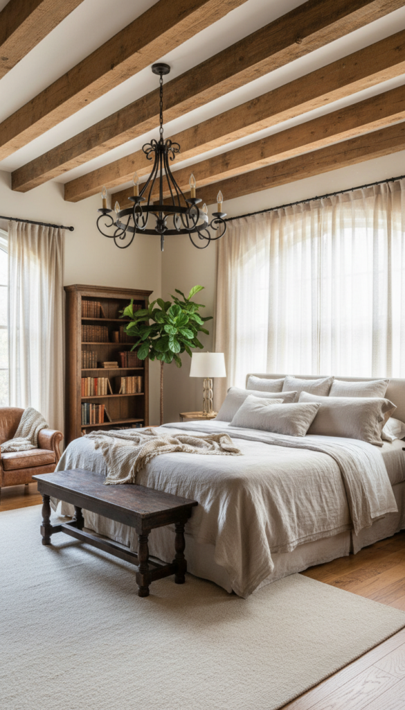 - Antique Accents: Place a vintage wooden bench or an antique trunk at the foot of the bed.