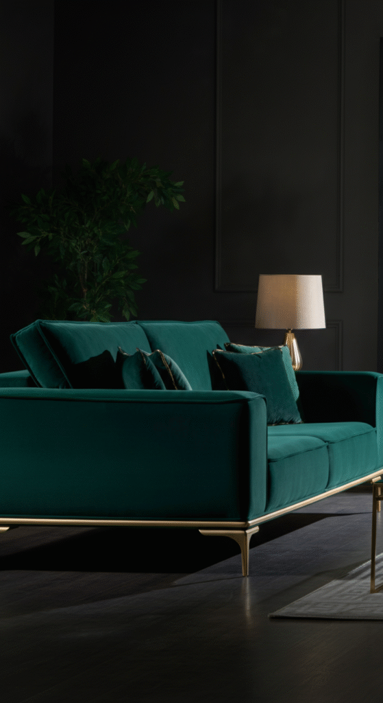 Opt for a velvet sofa or armchairs in deep, jewel-toned colors like emerald, sapphire, or burgundy for an instant upgrade.