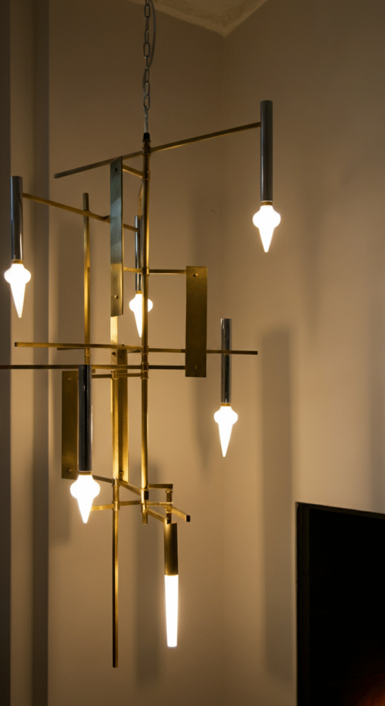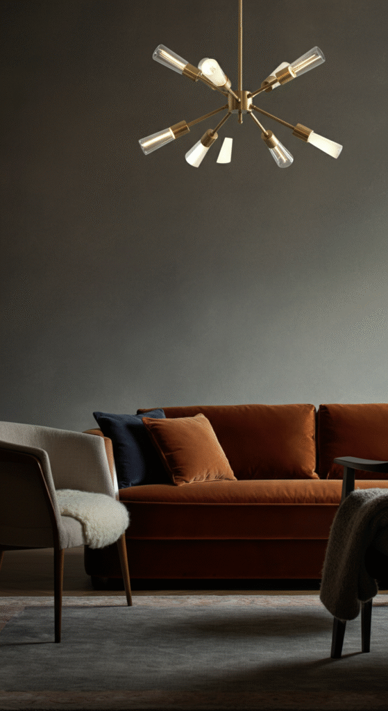 Lighting is not just about functionality—it’s an integral part of creating ambiance. A striking chandelier or pendant light fixture can act as the centerpiece of your living room, exuding sophistication and style. Consider geometric or sculptural designs that incorporate gold, brass, or chrome finishes for a contemporary touch.