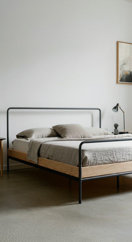 Your bed is the focal point of your bedroom, so choosing the right bed frame is crucial. In a minimalist design, less is more—look for a sleek, simple bed frame that doesn’t overwhelm the room.