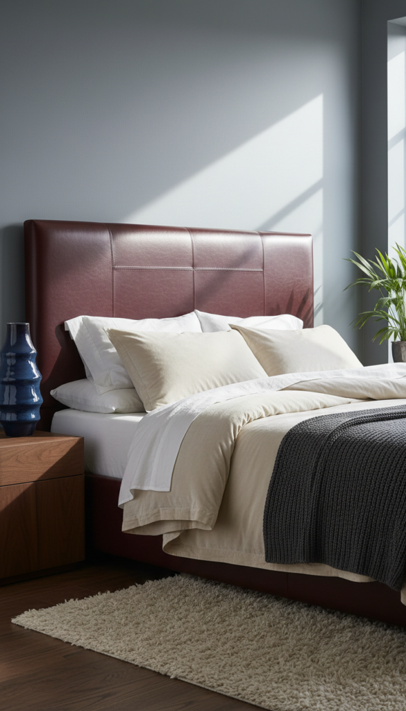 Think of it as a visual break. A dark headboard with pale-colored throw pillows or contrasting floor rugs can add a fresh vibe without disrupting the harmony of the room.