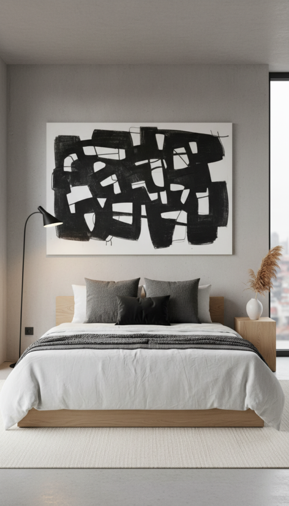 A monochrome room needs something to break up the uniformity. Wall art provides the perfect opportunity to inject personality into the space while keeping the overall aesthetic intact. Consider large abstract paintings or simple, minimalist art in the same color scheme — think black-and-white photography, charcoal sketches, or graphic designs in muted tones.