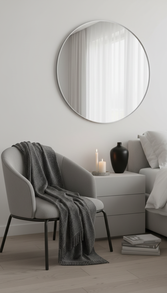 Finally, accessories are the cherry on top of any monochrome bedroom. From throw pillows and blankets to vases and lamps, small details help tie the entire room together. Choose monochrome accessories that reflect your personal style and the room’s main color. A gold-framed mirror or black decorative candles can seamlessly blend into a space dominated by grey tones.