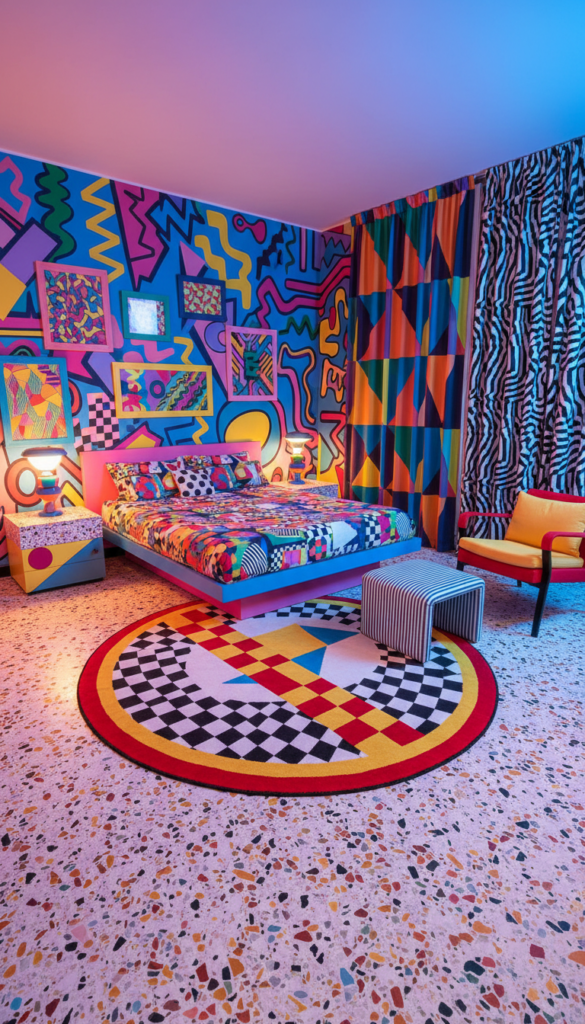 If you hate boring beige, the Memphis design movement of the 1980s is your antidote. This aesthetic is characterized by clashing colors, abstract shapes, and a sense of playfulness. It is bold, weird, and totally unforgettable.