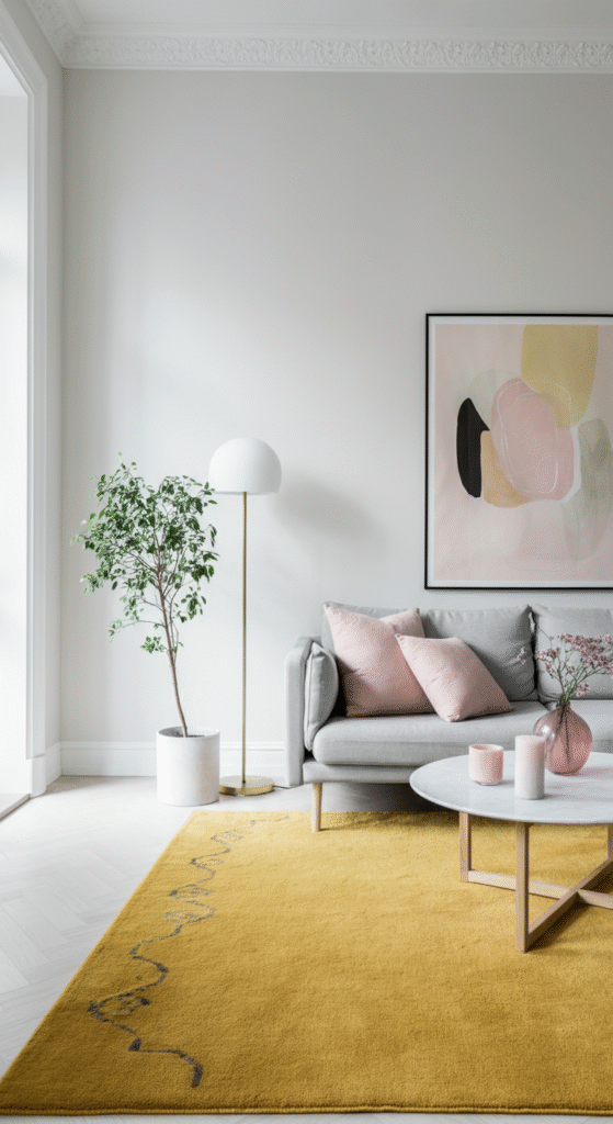 How do I incorporate pops of color in a Scandinavian-inspired living room?