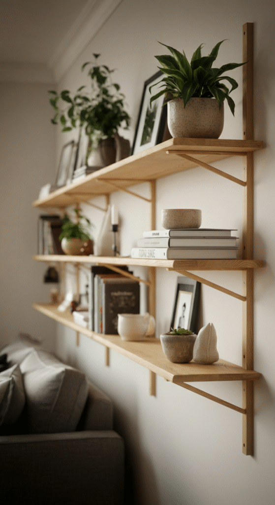To make the most of your open shelving, consider materials like light wood or metal in matte finishes. These elements tie in beautifully with the rest of the Scandinavian aesthetic, ensuring that your shelving units look both stylish and cohesive.
