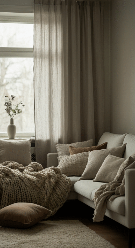 5. Cozy Textures with Layered Fabrics