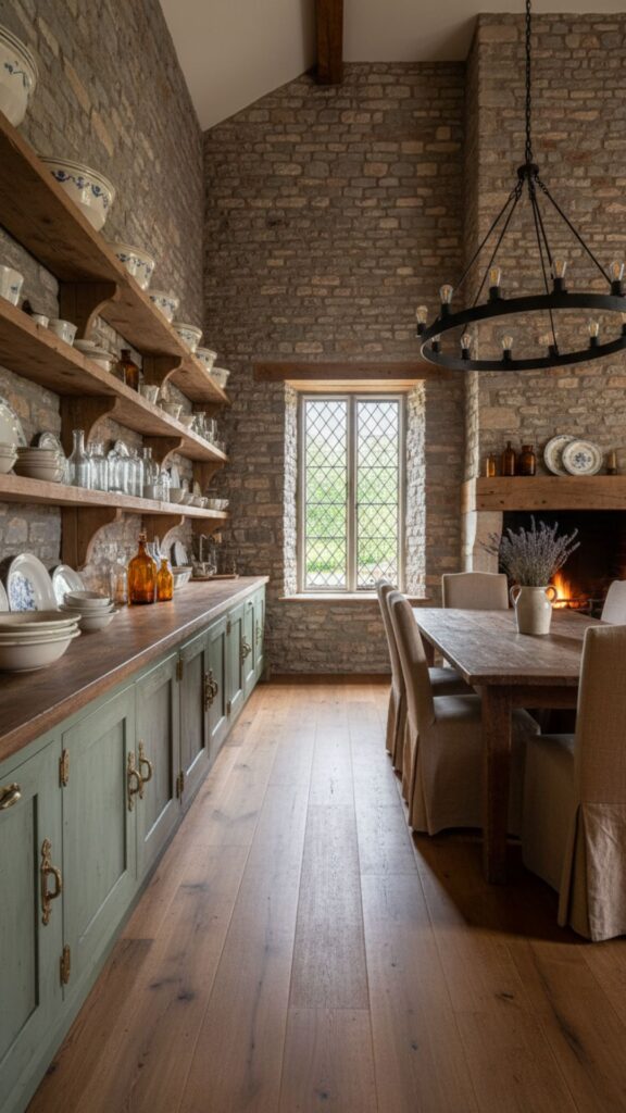 - Use reclaimed wood for open shelving or a butcher block countertop.