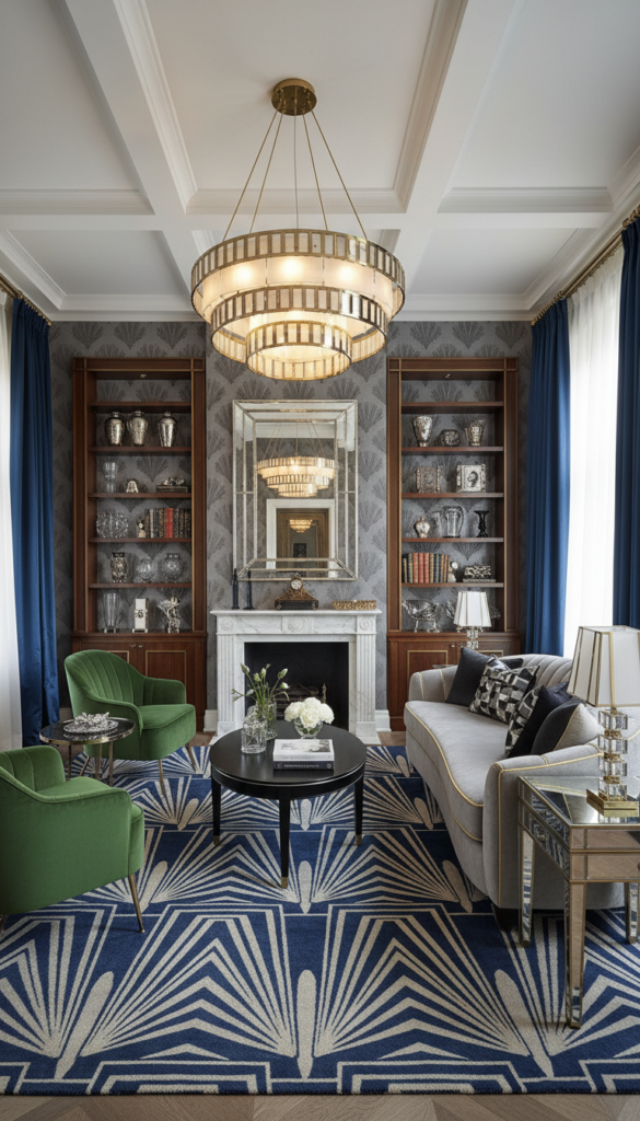 This bold aesthetic merges the roaring 20s with modern luxury. It celebrates geometric patterns, rich fabrics, and metallic accents.