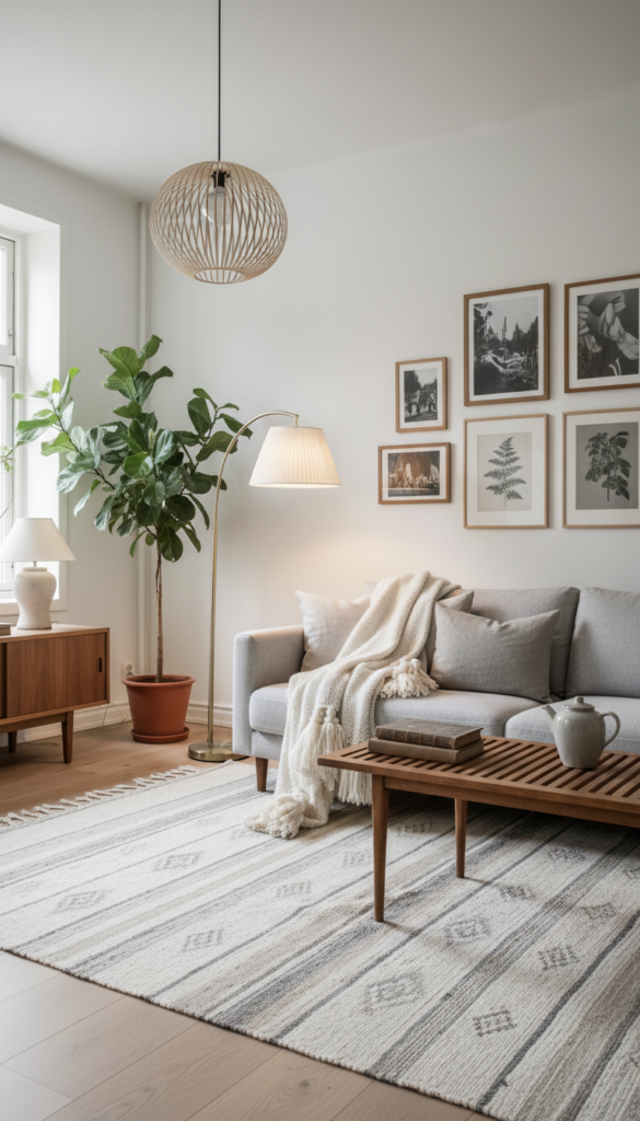 This aesthetic blends the cozy functionality of Scandinavian design with curated vintage collectibles. It is warm, practical, and highly textured.
