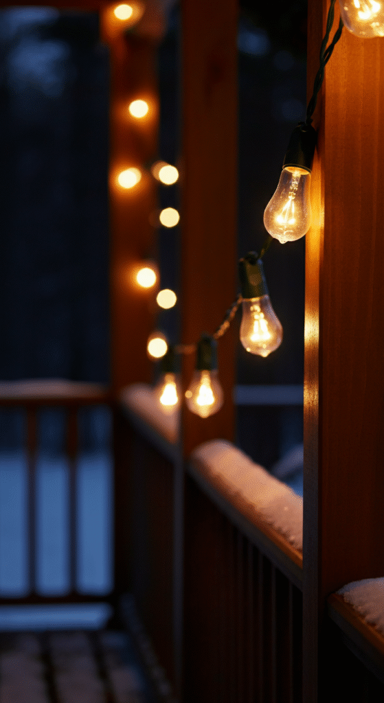 Vintage-style outdoor Christmas lights create a warm glow that modern bright LEDs can’t fully replace. Choose Edison-style bulbs, warm white tones, or string lights with oversized globes to create that nostalgic ambiance.