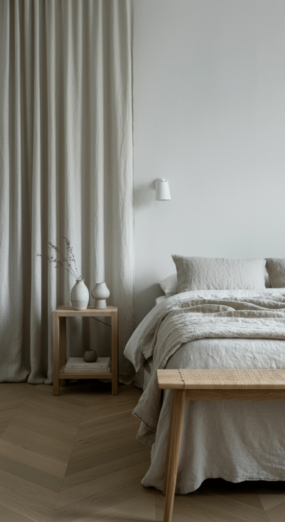 The next time you style your bedroom, remember: calm doesn’t have to mean empty, and minimal doesn’t have to mean cold. It’s all about creating a sanctuary where natural materials tell their quiet story — one linen weave and wood grain at a time.