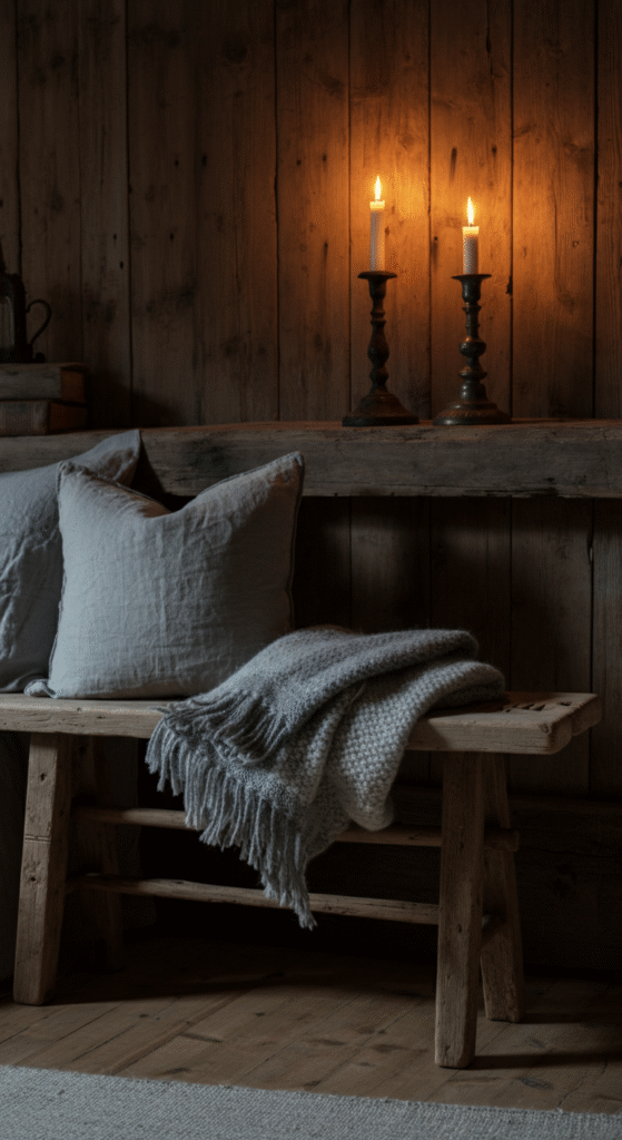4. Reclaimed Wood + Stone Linen: The Rustic Nordic Charm