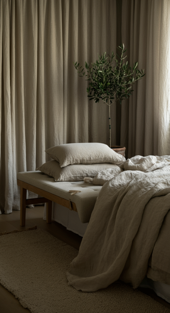 A wood and linen bedroom bench is more than just a piece of furniture — it’s a bridge between functionality and feeling. It anchors your space, adds storage or seating, and most importantly, brings warmth through texture and tone.