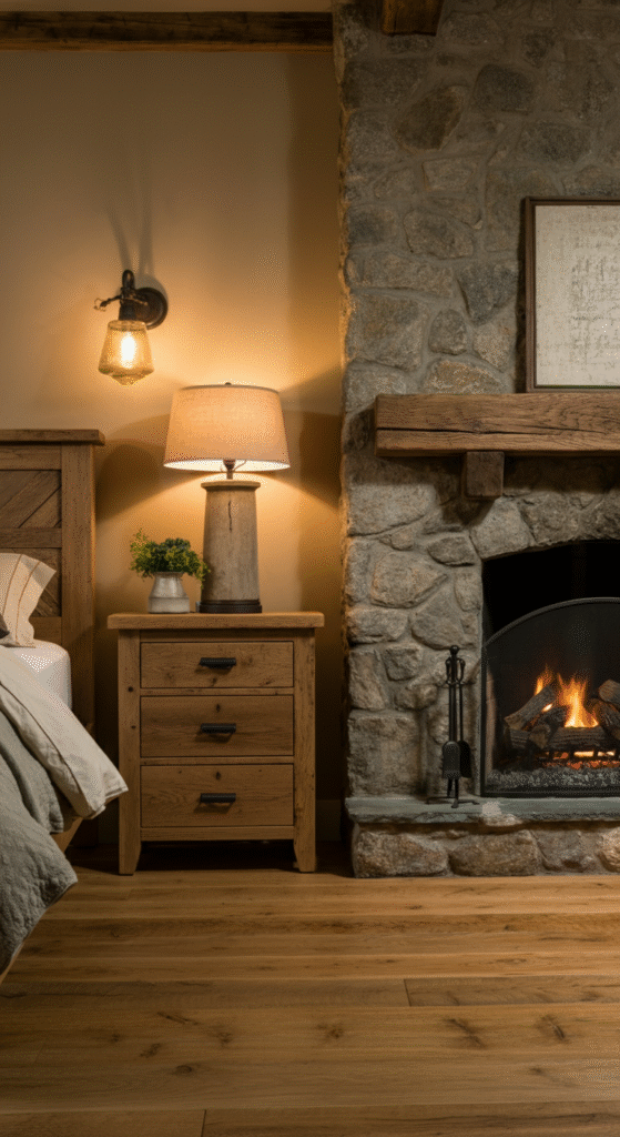 Consider using Edison bulbs for a touch of rustic industrial, or install a dimmer switch so you can adjust the lighting depending on your mood. Whether it’s a classic chandelier or simple bedside lamps, vintage lighting adds depth and an inviting glow to your rustic sanctuary.
