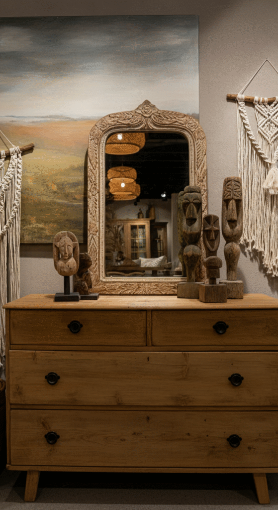 No rustic bedroom is complete without a few rustic-inspired accents. Items like a large vintage mirror with a distressed wooden frame, a woven basket for storage, or a hand-carved wooden sculpture can elevate the space. Wall art that features landscapes, wildlife, or nature-inspired scenes also adds an extra layer of rustic charm.