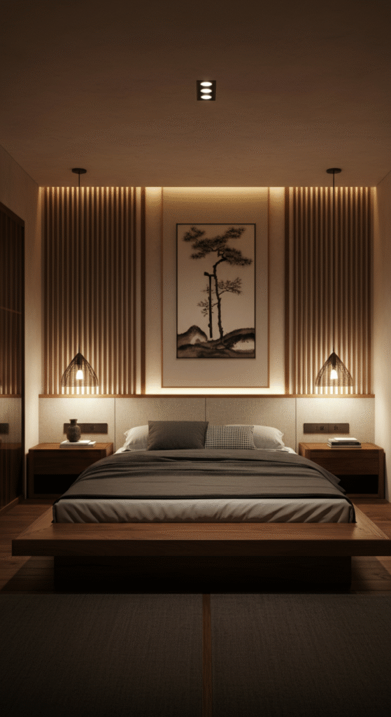 Lighting defines mood more than any other element in a Zen bedroom.