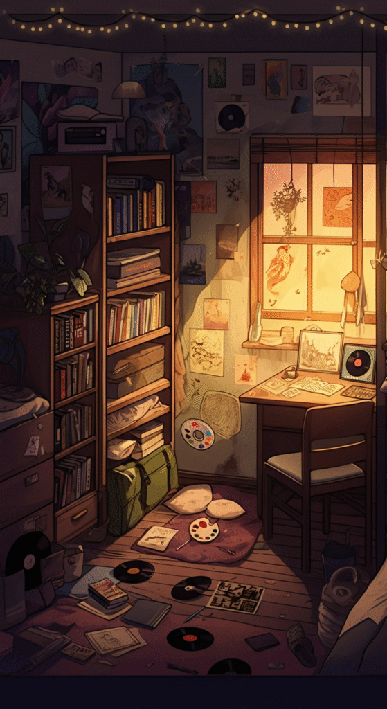 The most memorable anime bedrooms are filled with personal details. Books, notes, instruments, keepsakes, or creative tools quietly reveal the character’s inner world.