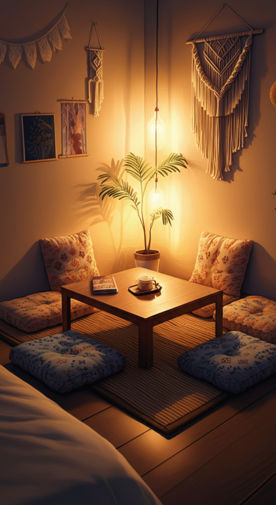 There is a quiet symbolism here. Lower furniture subconsciously slows movement and encourages rest, something anime often portrays through still moments and silence.