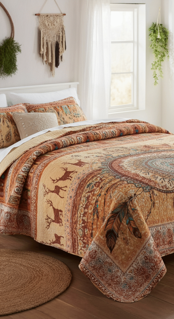 As the world modernized, these beloved creations began to take on new forms, blending with various décor styles, including Boho chic. Today, these Boho Christmas quilts are making a comeback—combining vintage charm with modern flair.