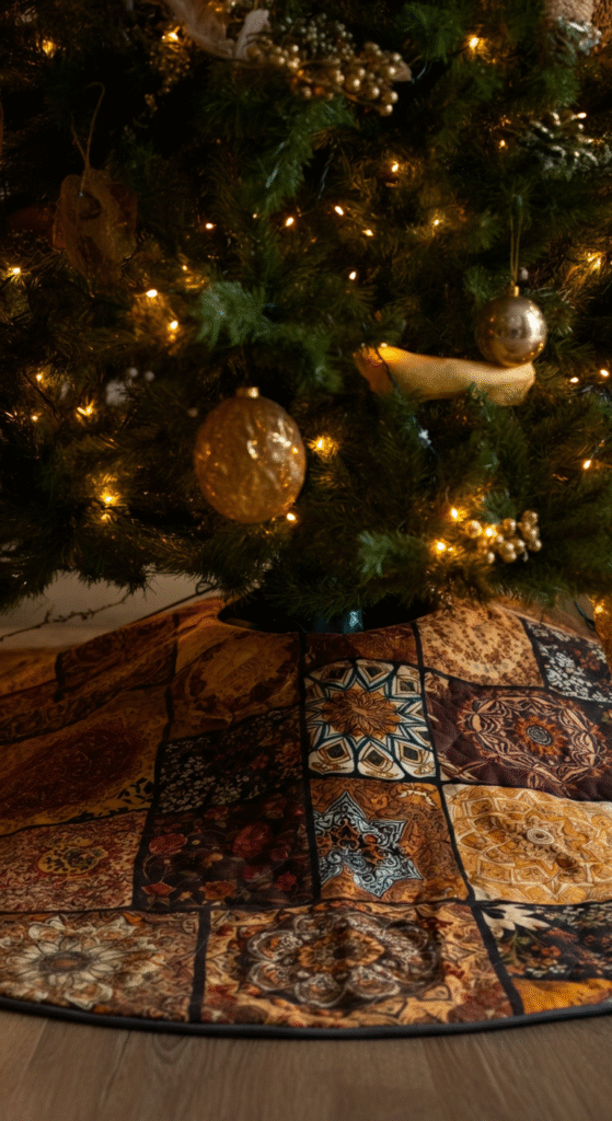 Who says a quilt can only be used as bedding? A Boho quilted tree skirt brings a unique charm to your Christmas tree while embracing Bohemian elements.