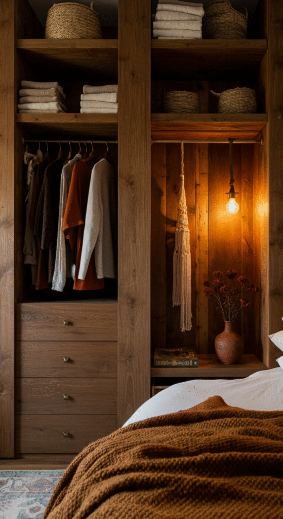 Whether it’s arched alcoves glowing with terracotta charm, rustic wooden wardrobes with stories to tell, or plant-filled nooks that breathe life into your mornings — these built-ins redefine what “boho luxury” really means.