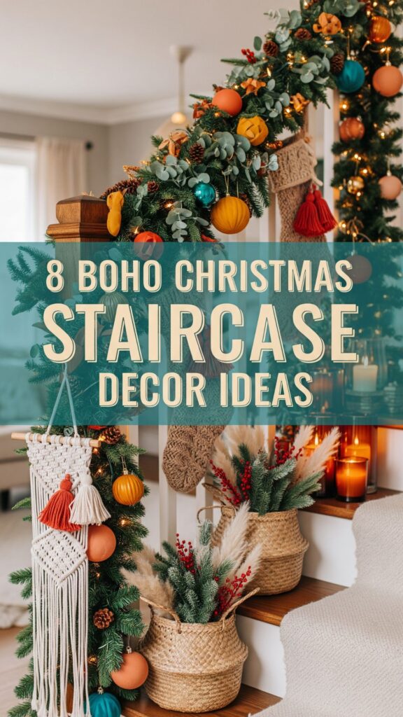 There you have it—8 boho-inspired Christmas staircase décor ideas that will add warmth, charm, and personality to your home this holiday season.