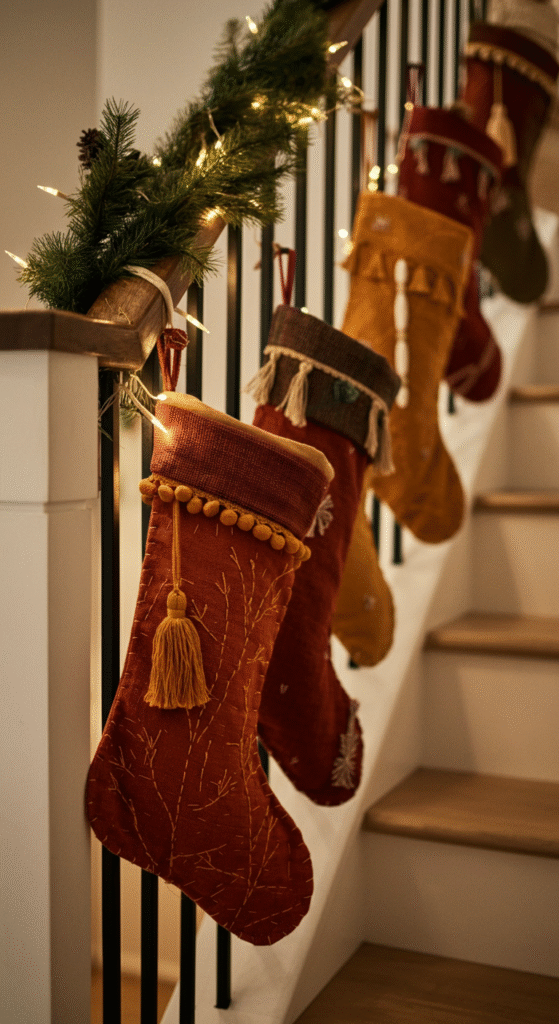 Boho style celebrates individuality and creativity, so why not extend that spirit to your Christmas stockings? Instead of the typical red and green, opt for stockings in earthy tones like terracotta, mustard, and soft neutrals. You can even get creative with DIY stockings using patterned fabric, tassels, and pom-poms for that bohemian flair.