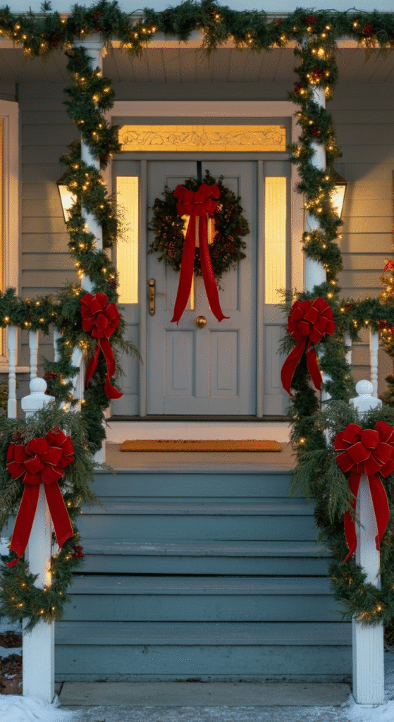 1. Classic Greenery and Red Bows
