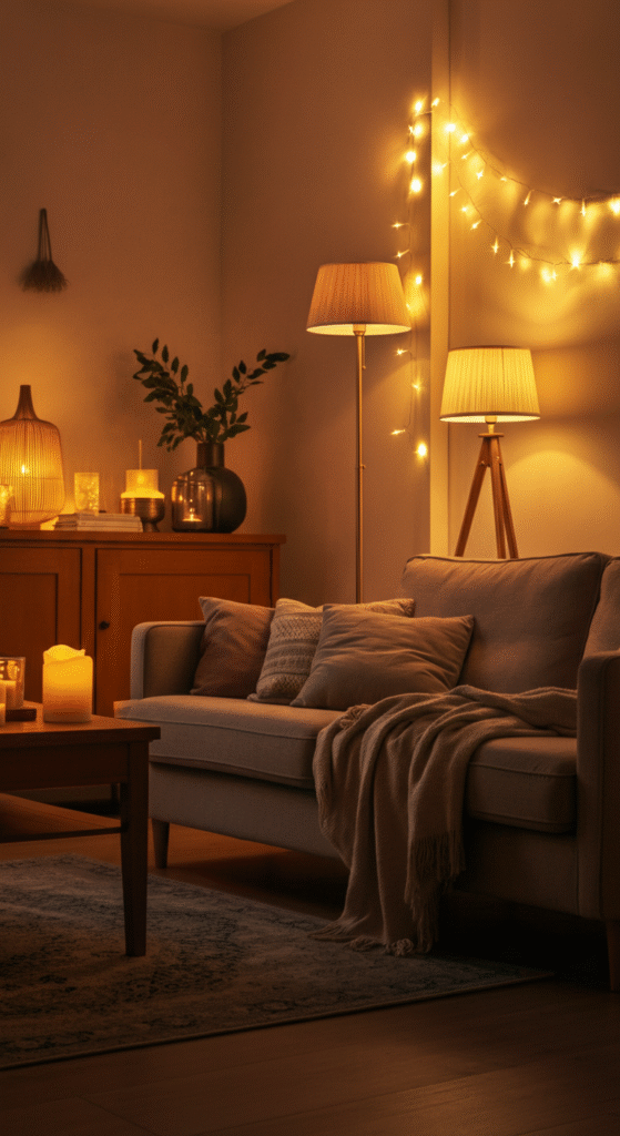 Lighting is one of the most crucial elements when creating a cozy atmosphere. Harsh overhead lights can create a cold, sterile environment. Instead, opt for soft, warm lighting that makes the room feel inviting.