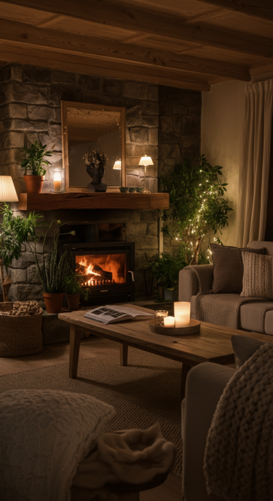 Yes, a fireplace is a fantastic way to add both warmth and charm to your living room. If you don’t have a traditional fireplace, consider an electric or gas fireplace for the same cozy effect. A fireplace creates a natural focal point and adds a sense of relaxation, perfect for chilly nights.