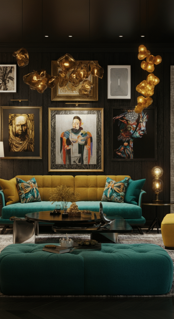 Add sculptural elements like a modernist coffee table or statement armchair that doubles as art in itself. Don’t shy away from oversized pieces—they create drama and scale that smaller works can’t achieve.