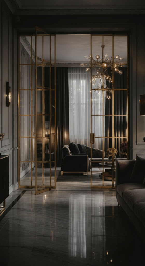 Choose screens that double as décor pieces. Think intricate laser-cut metal, rattan with gold accents, or art-deco-inspired mirrored panels. These not only delineate zones but also act as conversation starters.
