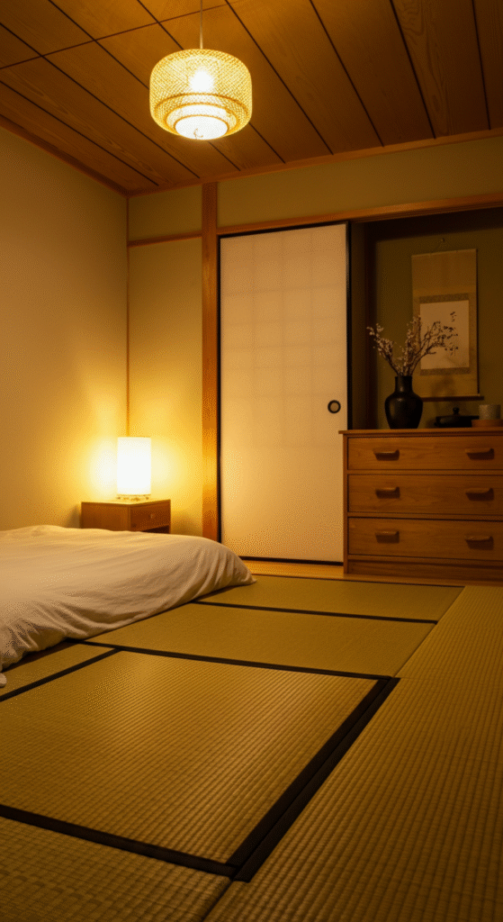 Lighting plays a significant role in Japanese bedrooms. Soft, ambient lighting is preferred over harsh, overhead lights. Paper lanterns, low-hanging pendant lights, and candles can be used to create a warm, inviting glow that encourages relaxation. The goal is to avoid overstimulating the senses with bright lights and instead focus on creating an atmosphere of peace and calm.