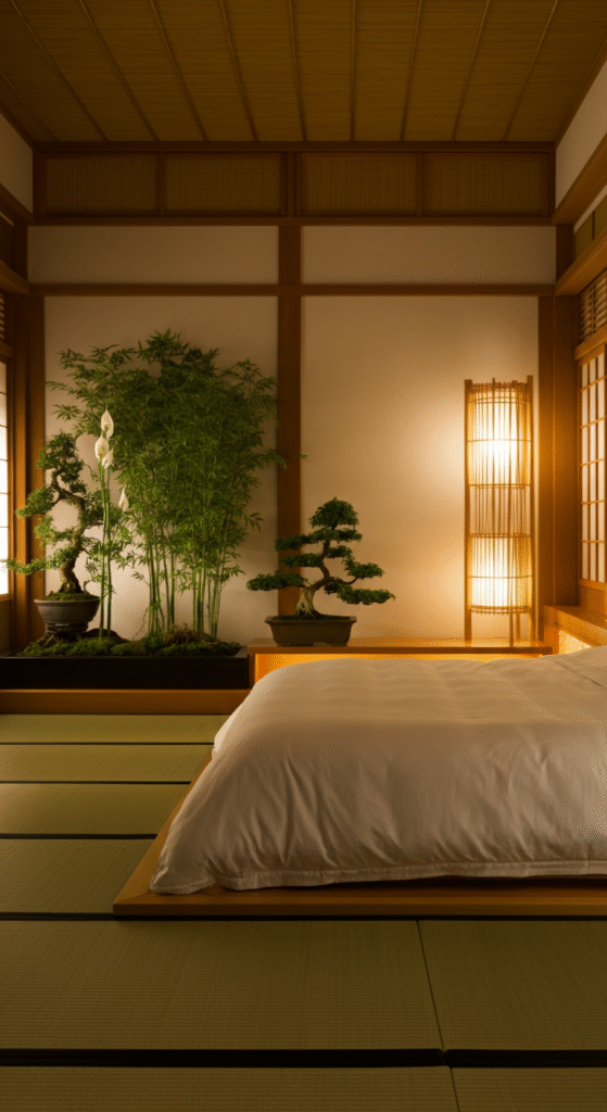 Incorporating plants into your Japanese bedroom is another great way to bring the calming effect of nature into your space. Indoor plants like bonsai trees, bamboo, or peace lilies not only enhance the room’s aesthetic but also purify the air and promote a sense of well-being.