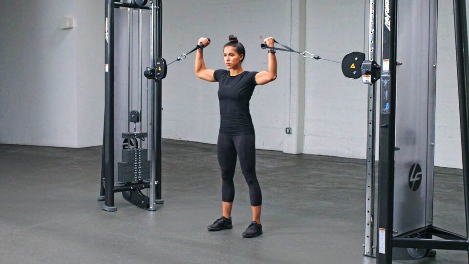 - Use a single handle, and pull it down toward your shoulder while keeping your upper arm stationary.