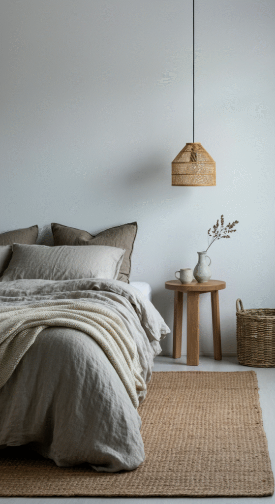 Japandi is often called “minimalism with a soul” because it doesn’t believe in empty, cold rooms. It believes in simplicity with warmth. That warmth comes from layering natural materials.