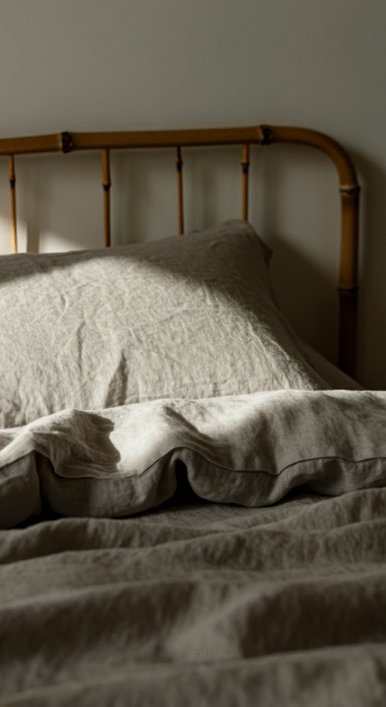 Do you know: Linen bedding regulates temperature naturally, keeping you cool in summers and warm in winter. That’s one reason Japandi bedrooms often feel season-friendly.