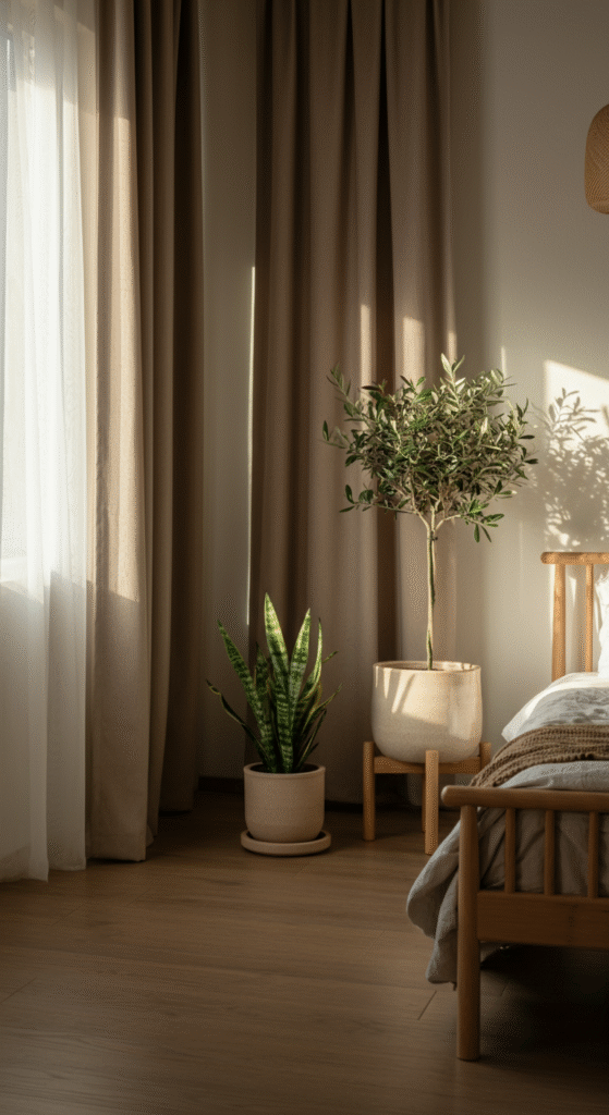 A Japandi bedroom without plants feels incomplete. Nature is central to both Japanese and Scandinavian philosophies. Plants clean the air, soften the room visually, and remind you that your space is alive.