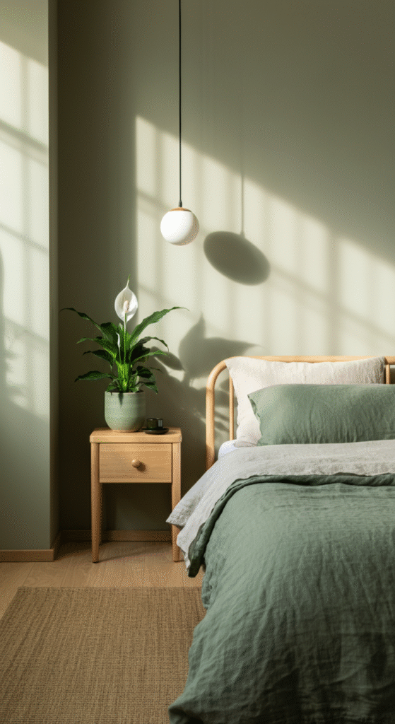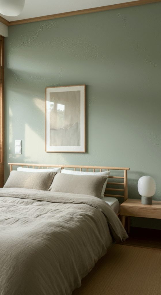 There is something magical about sage green. It feels like you washed your walls with morning mist. In Japandi style, sage becomes the star color because it blends well with both Japanese minimal tone and Scandinavian warmth.