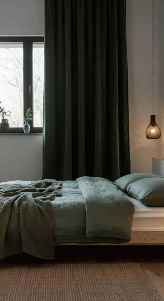 If you want a deeper visual weight in your bedroom, forest green curtains are the smartest choice. They create a soft contrast against lighter walls like beige, off white, or sage.