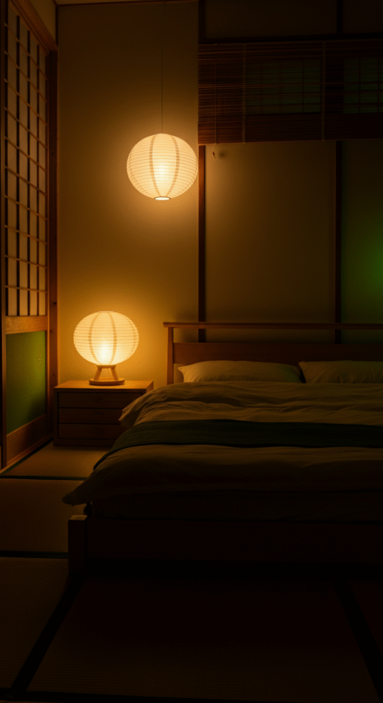Lighting is the heart of Japandi design. If you get this wrong, even the most expensive decor will look flat. In a green aesthetic bedroom, lighting is what makes everything feel cozy.