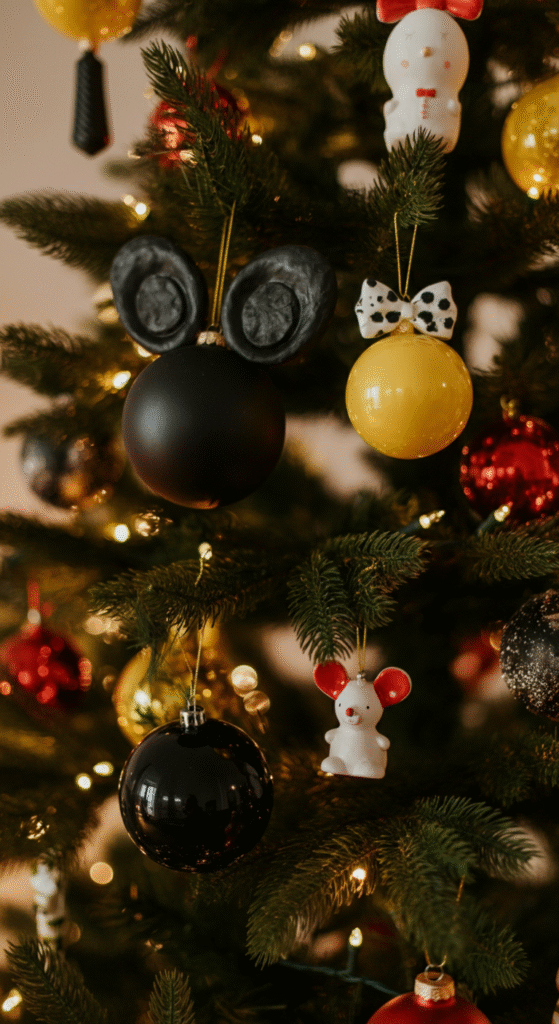 For those who want to keep things classic, a Mickey Mouse-themed tree is a must-have. This tree celebrates everyone’s favorite mouse and his friends—Minnie, Goofy, Donald, and Pluto. Black, red, yellow, and white ornaments with Mickey-shaped ears, bow ties, and festive bows will make this tree the centerpiece of your holiday celebrations.