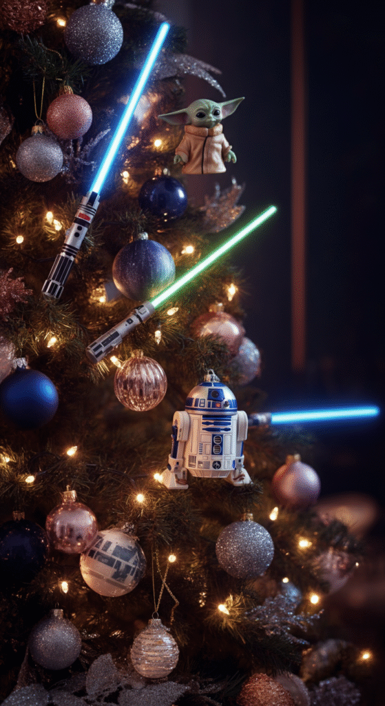 A Star Wars-themed Christmas tree brings a galaxy far, far away into your home. Imagine branches adorned with lightsabers, miniature Death Stars, and ornaments shaped like R2-D2 and Baby Yoda. Whether you’re a fan of the original trilogy or the new wave of The Mandalorian, this tree will make your holiday season feel like an epic adventure.