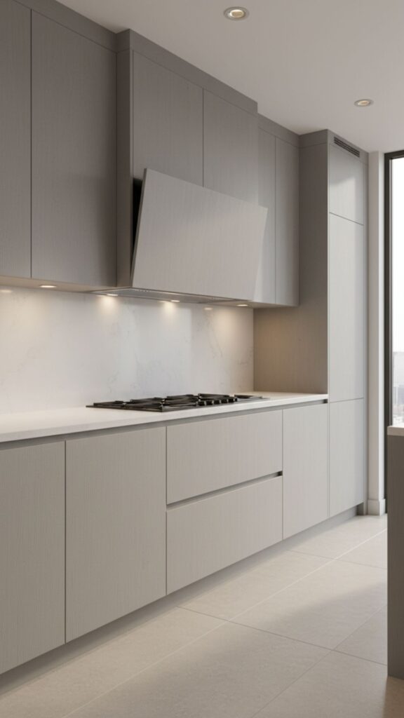 For those who prefer a seamless look, the concealed or “integrated” hood is the ultimate choice. This style hides the ventilation machinery inside a cabinet that matches the rest of your kitchen. It is perfect for open-concept homes where you want the kitchen to feel more like a living space and less like a utility room.