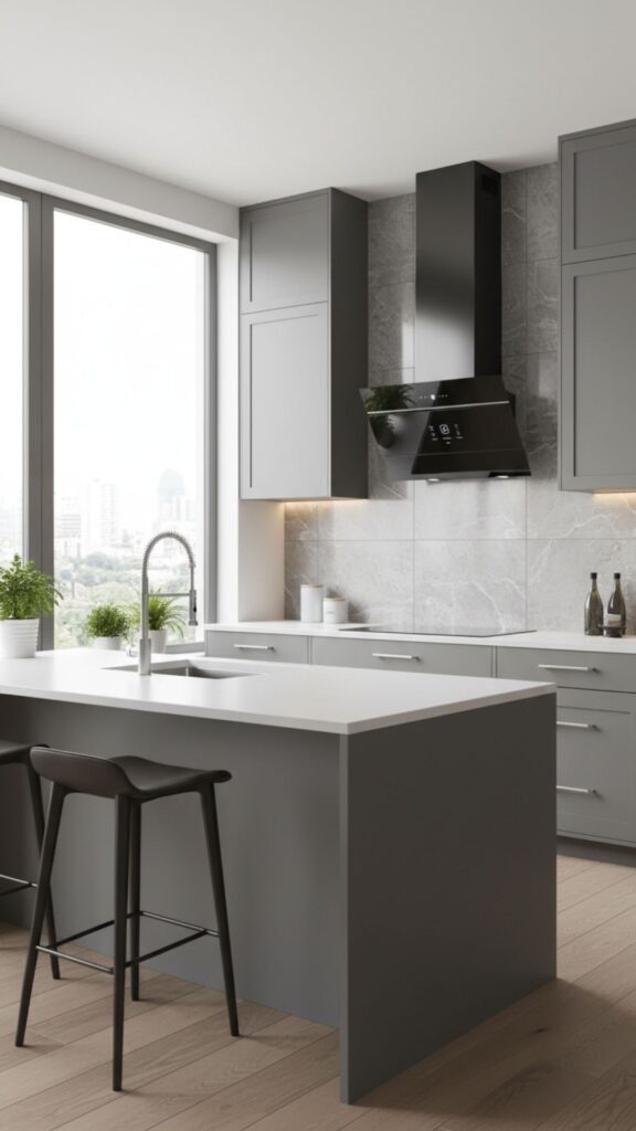 Stainless steel remains a staple in modern kitchens for a reason: it’s durable, easy to clean, and effortlessly chic. A slim, T-shaped or box-chimney hood offers clean lines that work perfectly in industrial or minimalist spaces. It provides a professional, chef-quality vibe without overwhelming the visual space of the room.