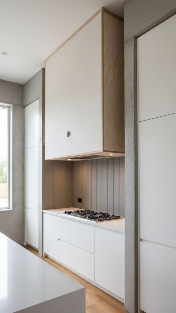 Box hoods are substantial, blocky, and undeniably bold. They often extend the same material used on the walls or backsplash to create a monolithic structure. This idea works exceptionally well in contemporary farmhouses or brutalist-inspired interiors where texture and form take precedence over shine.