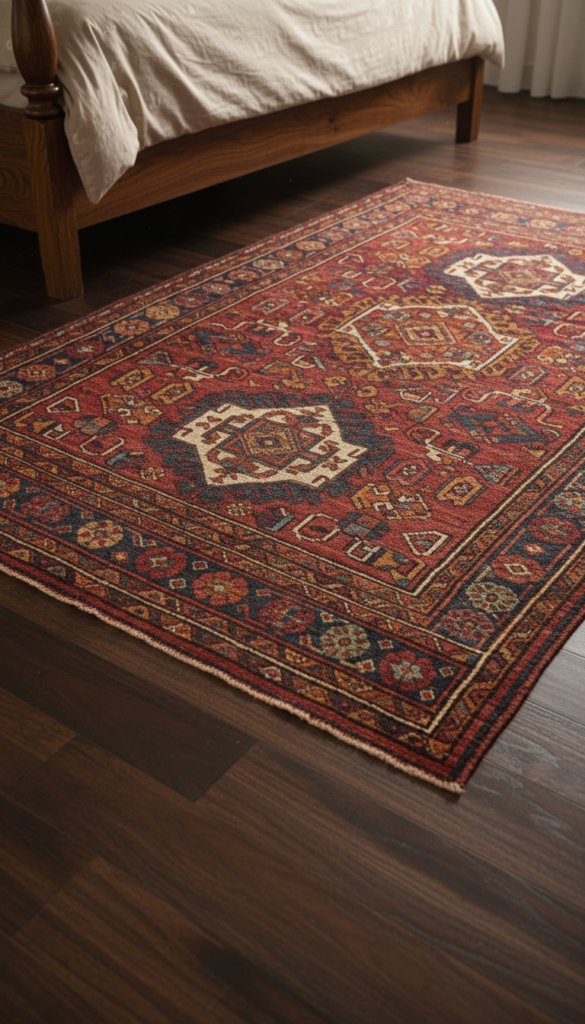 - Pattern: Look for rugs with deep reds, burnt oranges, and navy blues.