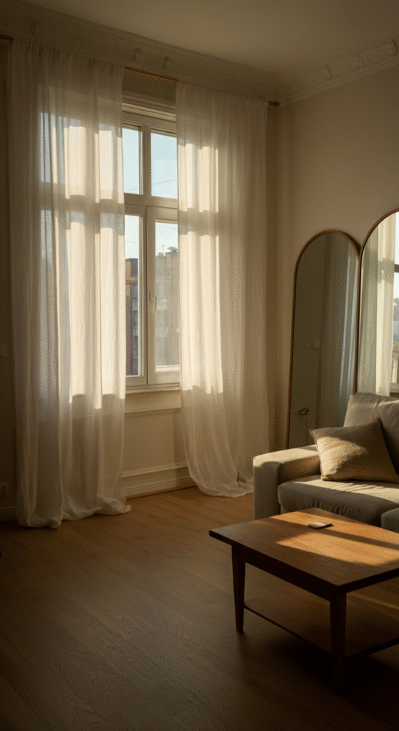 Forget heavy drapes or blackout curtains. The goal is to let light flow freely. Use sheer linen curtains or keep windows bare if privacy allows.