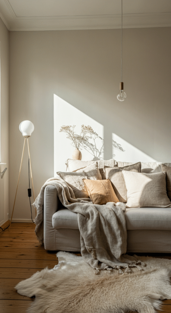 White, beige, taupe, and soft gray dominate Scandinavian interiors because they reflect natural light beautifully. The idea is to amplify every bit of daylight, especially in regions where winter sunlight is scarce.